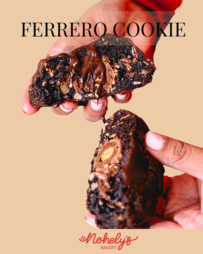 Una galleta intensa y muy chocolatosa, con avellanas tostadas y un relleno de Ferrero con Nutella que se derrite al hornearse. Es de esos sabores que se sienten especiales y diferentes .